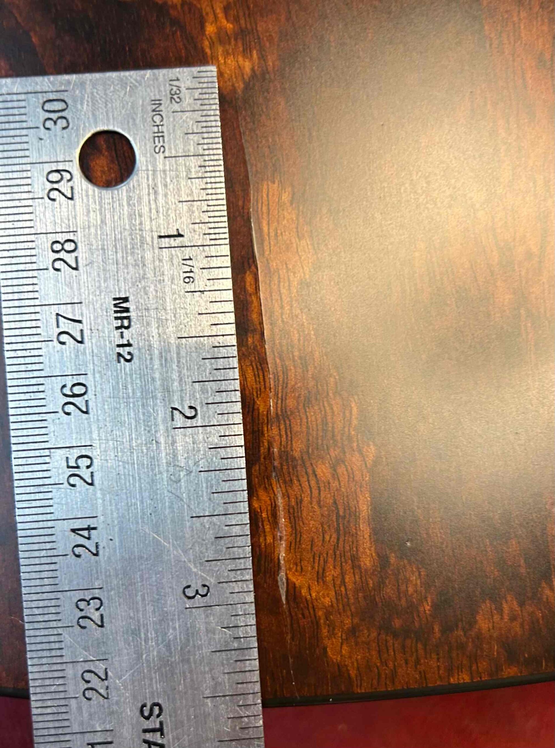 This guitar has a repaired crack in the back.